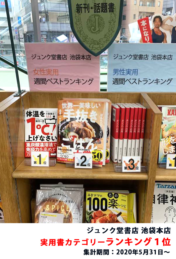 緊急事態宣言解除後もコロナウイルスへの感染不安が収まらない中、体温を1℃上げることによる効果と、自宅で出来る「新ずぼら健康入浴スタイル『重炭酸温浴法』」について、やさしく解説した本書が、ジュンク堂書店池袋本店にて実用書ランキング1位となりました。引き続き、なるべく外出を控え、自身と家族の健康を守ろうとする40-60代の方を中心に、売れ行きを伸ばしています。